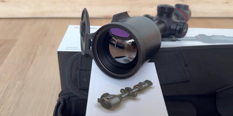 Lieferumfang: Wärmebildzielfernrohr, USB-C-Kabel, Objektivtuch, 2 Stück 18650-Akkus, Schnellstartanleitung, Akkuladegerät, Tragetasche, 2x Wärmebild Zielpad